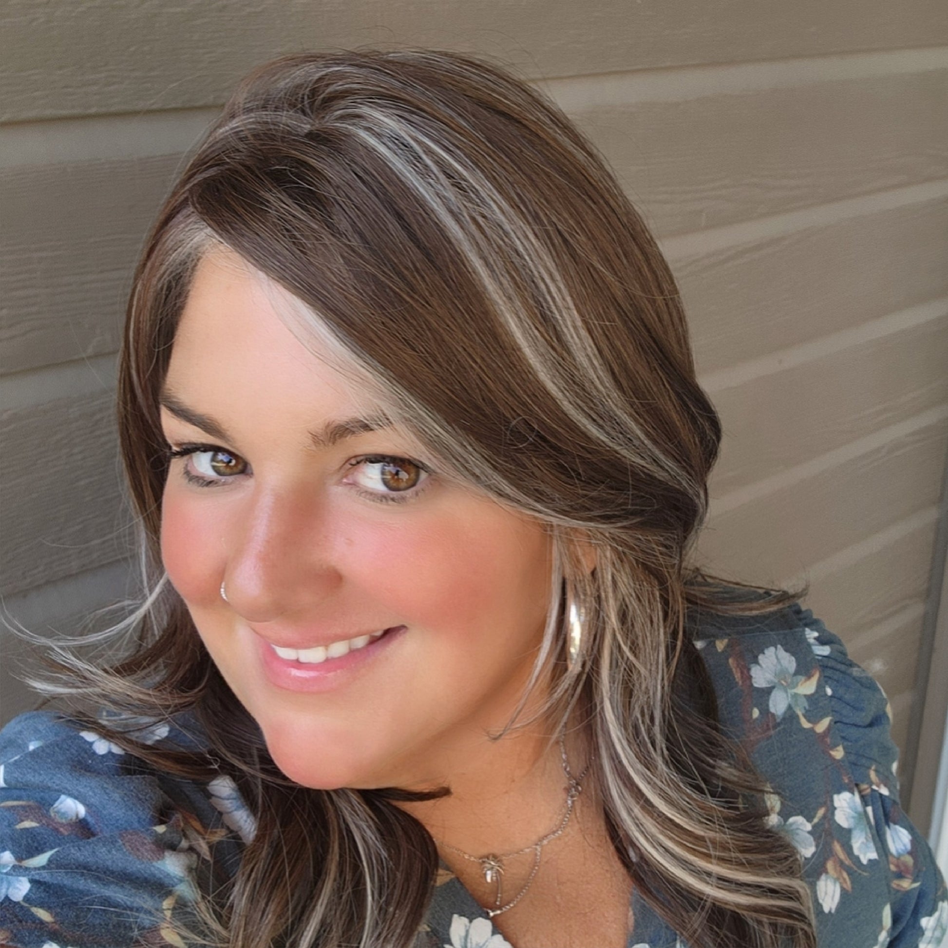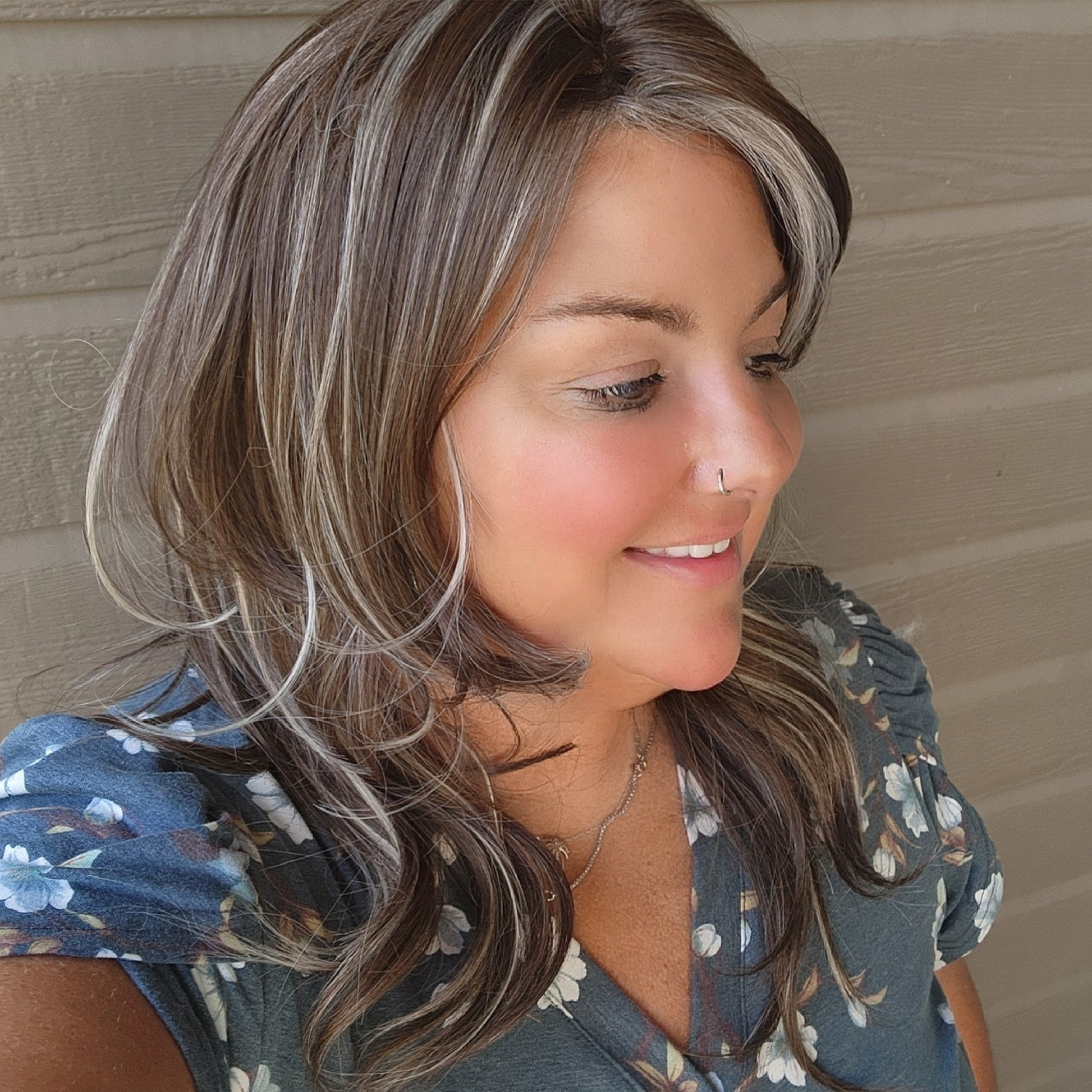 Bella is part of our new comfort line, designed for effortless beauty and all-day wear. She’s lightweight, secure, and styled to perfection with her soft brunette base and luminous platinum highlights.