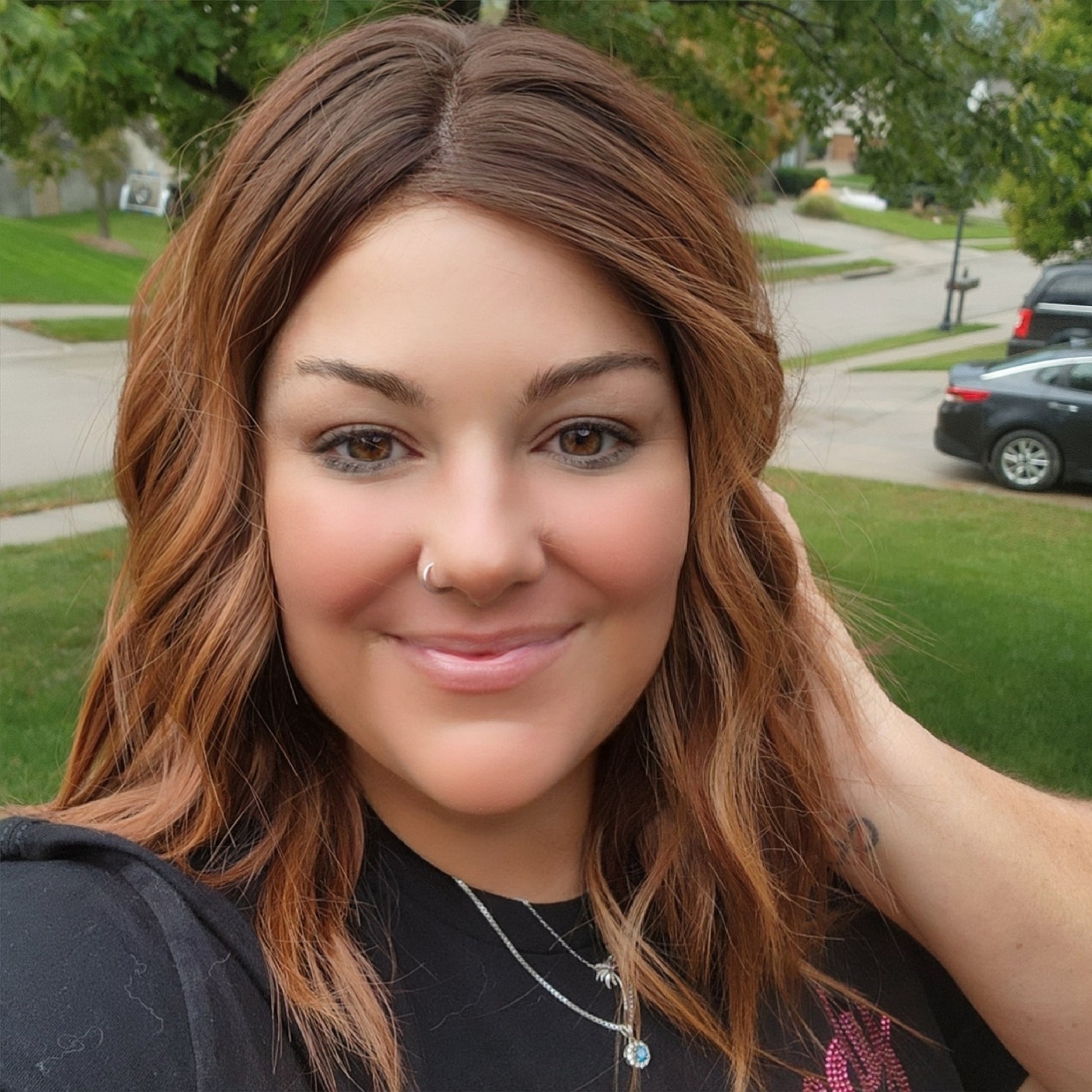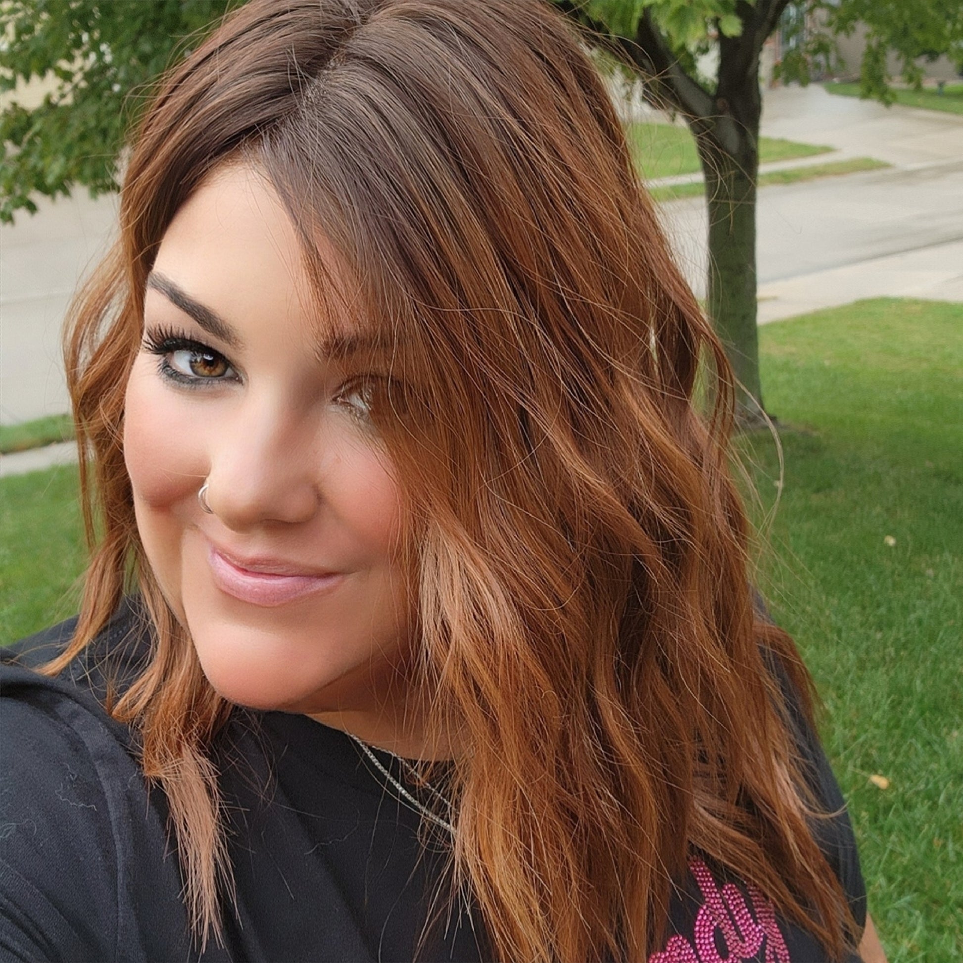 Hazel is that effortless beauty with warmth, texture, and life. Her soft layers and Utah curls create natural movement, while her rich red-hazel auburn tones add a captivating glow that complements every complexion.